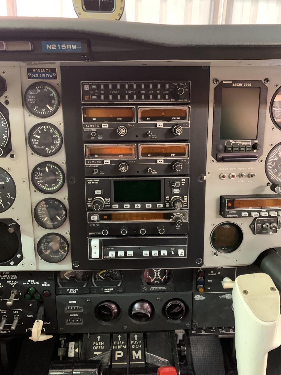 This A36 has spent most of its life in Georgia. Engine: Continental 300hp, 200MPH. IO-550-B S/N 675989. 1580 SNEW. Upgraded 25 gallon osbourne tanks. The airframe’s total time is 1580. Avionics Suite includes: Argus 7000, K185 Remote Annunciator, KG 102 Remote Dg, & Sigma-Tek Altitude Gyro.